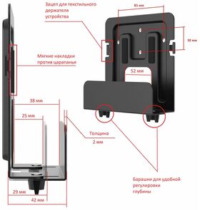 На него можно установить ресивер, роутер, видеокамеру, ТВ-приставку и другие предметы весом до 1 килограмма.