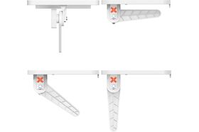 Кронштейн-полка оснащен лапками с изменяем углом установки, которые регулируются в зависимости от толщины ТВ. или монитора и фиксируются удобными барашками.