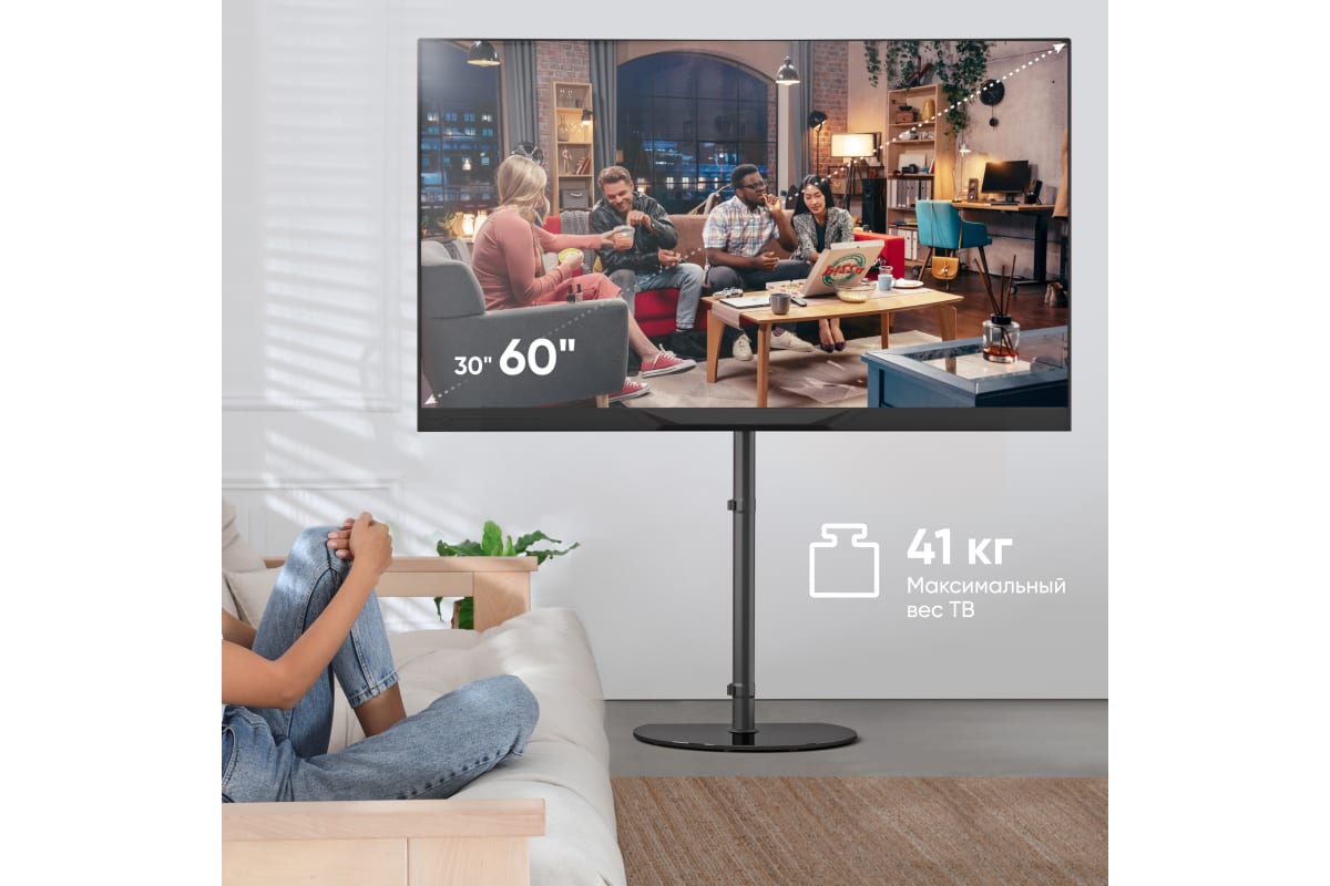Универсальная ТВ - стойка: ONKRON TS5060 – интерьерная стойка для телевизора от 30 ’’ до 60 ” весом до 41 кг. Станет отличной заменой настенному кронштейну дома или в небольшом офисе. Совместима с экранами стандарта VESA 100x100 – 400x400