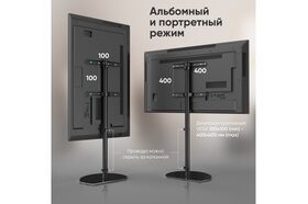 ONKRON Напольная ТВ стойка с регулировкой высоты, для экранов диагональю 30 ” - 60 ”, до 41 кг (90.4 lbs.) max VESA 400x400 поворот 108° черный TS5060-B
