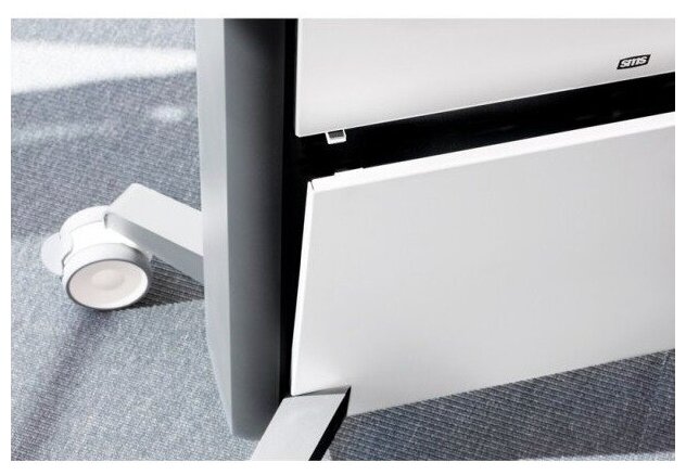 Мобильная стойка для презентационных дисплеев SMS Presence Mobile 1650. Максимальный вес дисплея 120 кг, рекомендуемые размеры дисплея от 46 дюймов и больше. Моторизованное перемещение дисплея вверх и вниз. Длина хода 500 мм. Отделка алюминий/серый антрацит.