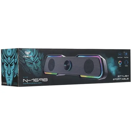 AULA N-169B оснащен стандартным AUX-входом для приема сигнала без потери качества. Градиентная RGB-подсветка – приятное дополнение при прослушивании любимой музыки. Удобный регулятор на передней панели корпуса позволяет одним движением выбирать желаемую громкость.