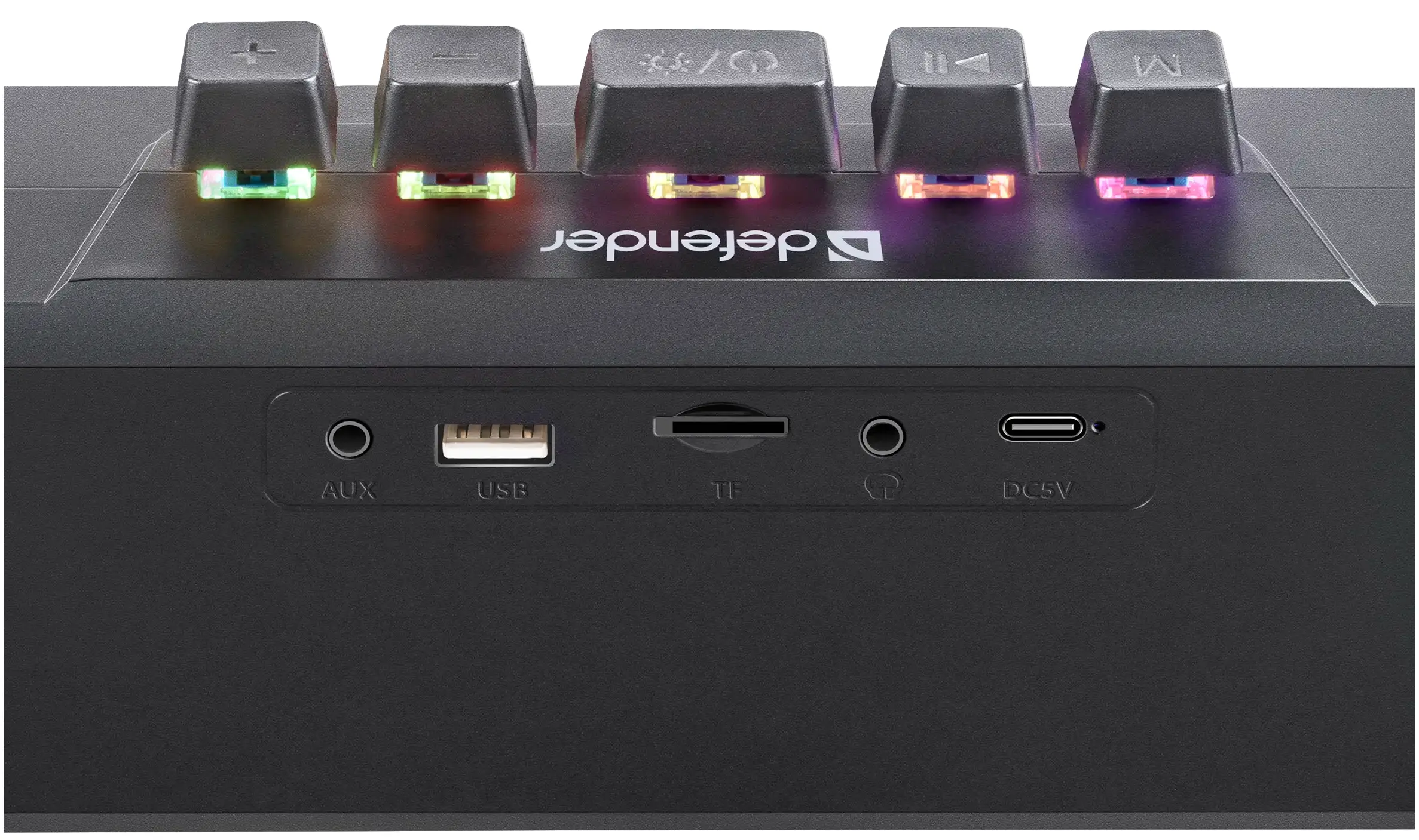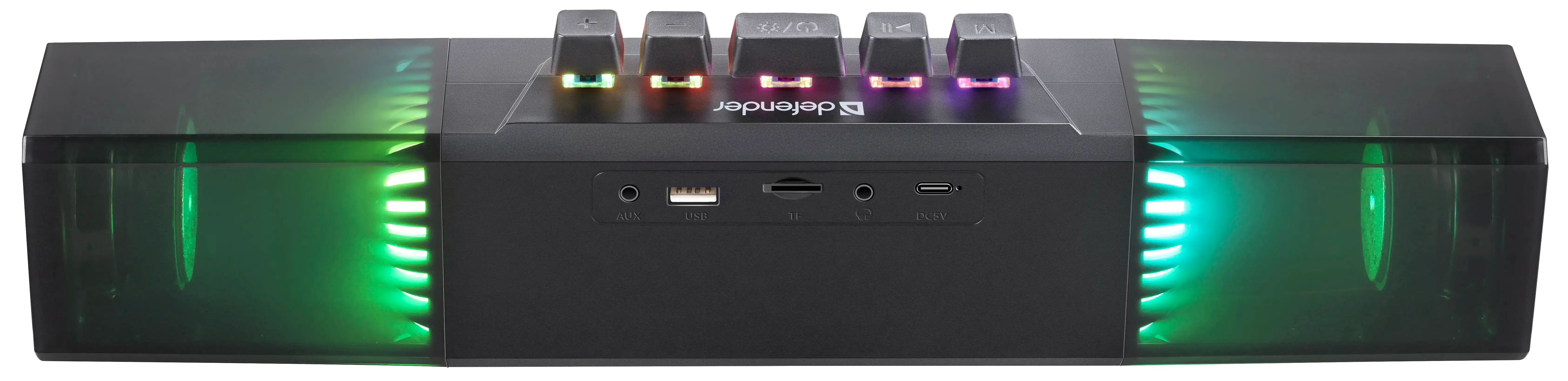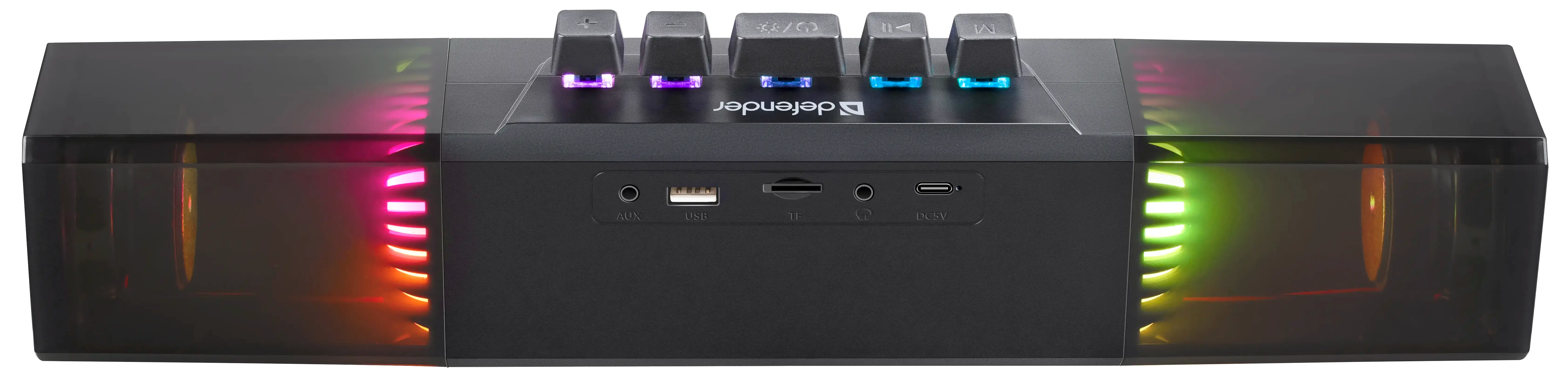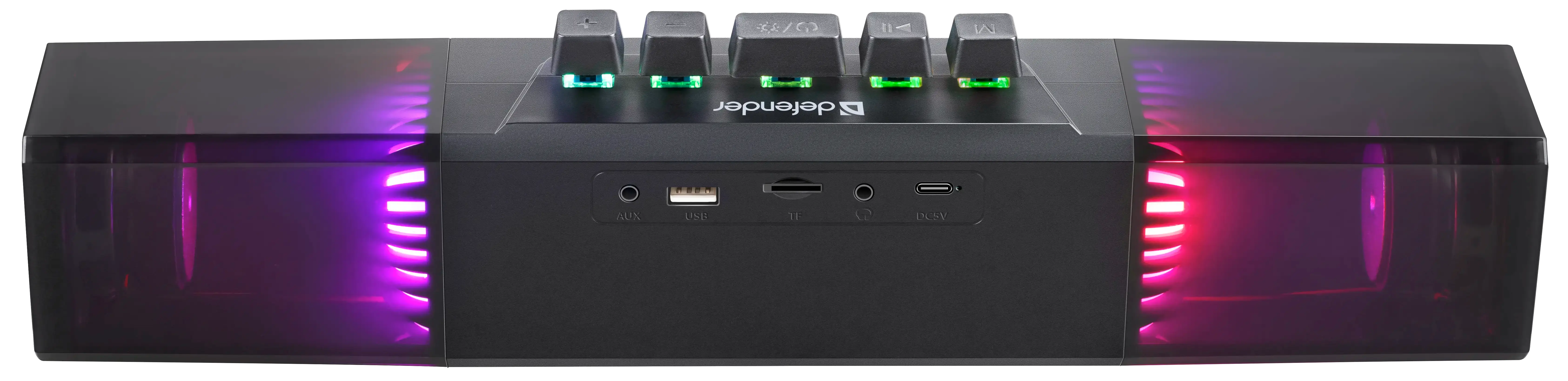 Портативная колонка-саундбар с функцией Bluetooth. Универсальное устройство подходит для ПК, телевизора и для использования вне дома. Встроенный аккумулятор ёмкостью 2400 мАч позволяет использовать динамик без привязки к источнику питания. Красивая подсветка, потрясающее качество звука для ваших любимых фильмов и музыки дома или в путешествии.