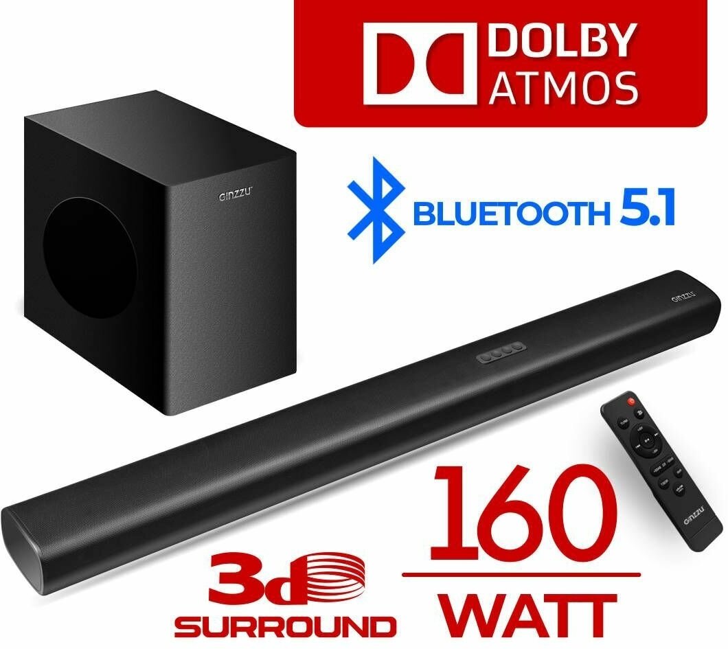 Саундбар Ginzzu GM-515 создает эффект объемного звучания, что способствует полному погружению в просматриваемый контент. Суммарная мощность акустической системы составляет 160 Вт. Благодаря этому устройство характеризуется значительной громкостью. Модель воспроизводит звук без искажений и помех на высоких и низких частотах. Для беспроводной передачи данных саундбар оснащен встроенным Bluetooth-адаптером. Для удаленного управления функциями акустической системы в комплекте предусмотрен специальный пульт.