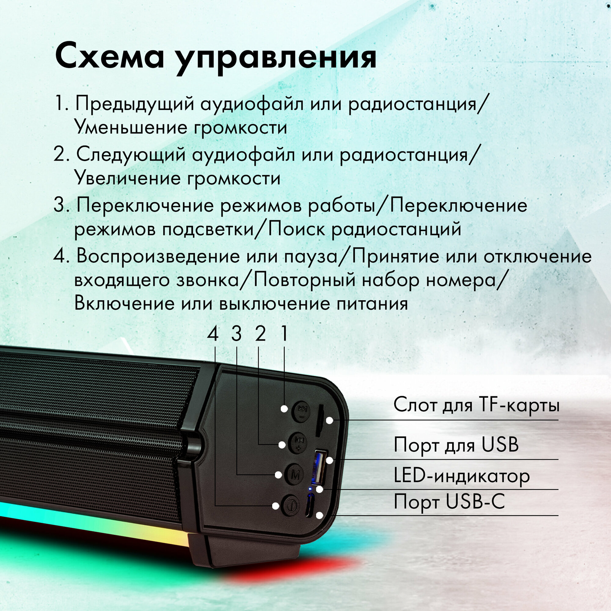 USB-подключение, Bluetooth, TF-карта, FM