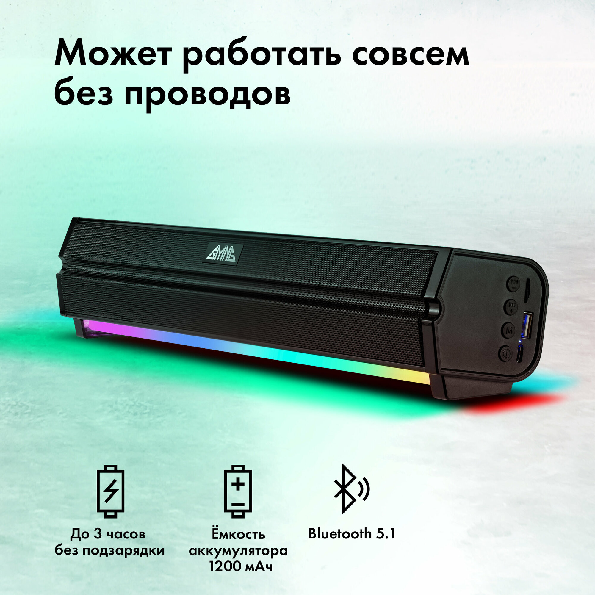 Адаптивная RGB-подсветка с несколькими режимами. Подключение/питание по USB-кабелю тип А + Bluetooth подключение. Зарядка через порт USB тип C.
