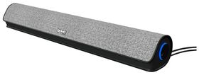 Стильный саундбар со звуковой схемой 2.0; черный корпус; тканевые вставки; удобное управление на корпусе