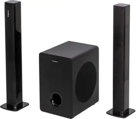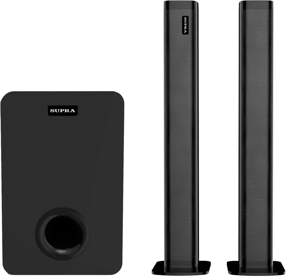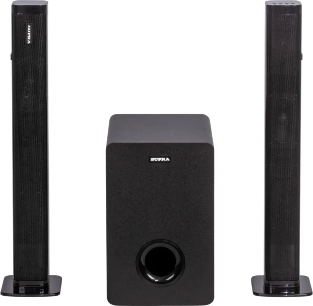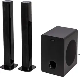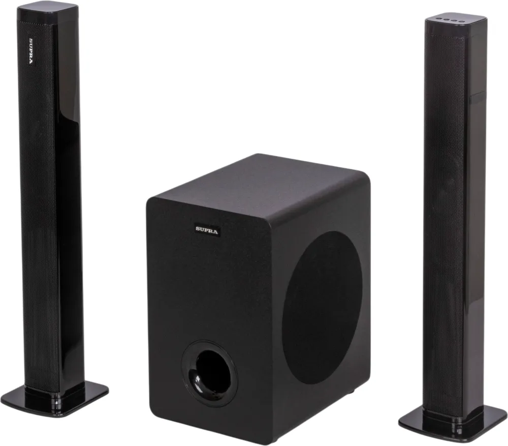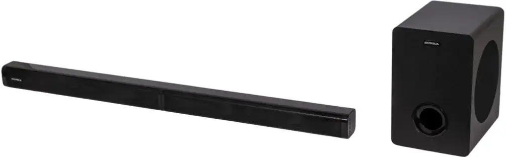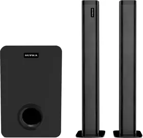 звуковая панель (саундбар), проводной сабвуфер 5,25, адаптер питания, пульт дистанционного управления, межблочный соединительный кабель, подставки для установки частей саундбара в вертикальном положении – 2 шт., аналоговый аудиокабель с разъемами 3,5 мм., набор для крепления на стену, гарантийный талон, инструкция на русском языке