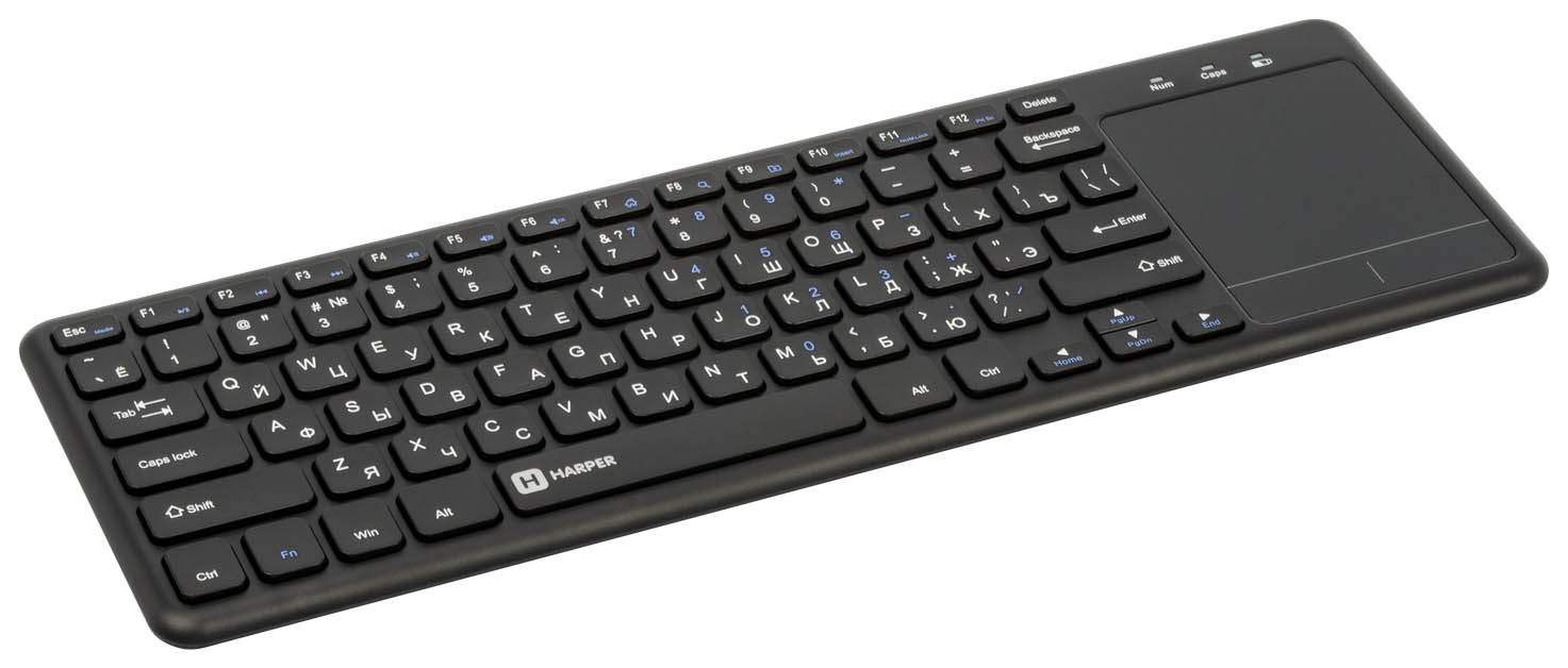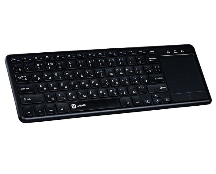 Harper KBTCH-155 — это практичная, стильная, лёгкая и компактная беспроводная клавиатура со встроенным тачпадом. Она подойдёт как к персональному компьютеру или ноутбуку, так и к SMART-телевизору, нужно лишь подключить приёмник к порту USB и включить саму клавиатуру. Установка каких-либо программ, драйверов не требуется.