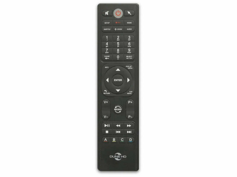 Пульт дистанционного управления для мультимедийных проигрывателей Dune HD. Работает со всеми моделями медиаплееров Dune HD.