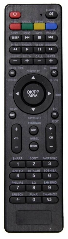 Универсальный пульт для телевизора модель RX-707E REXANT отличается простотой в использовании и совместим с большинством марок и моделей современных телевизоров, таких как: VESTEL, GRUNDIG, SHIVAKI, AKIRA, DAEWOO, KONKA, PRIMA, JVC, THOMSON, HISENSE, TCL, SHARP, SONY, PANASONIC, SANYO, HITACHI, TOSHIBA, PHILIPS, LG, SAMSUNG, ERISSON, FUNAI, CHANGHONG, AIWA, SKYWORTH.
