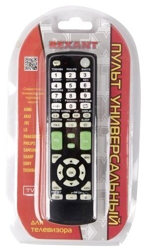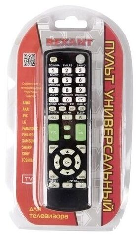 Универсальный пульт для телевизора модель RX-E877 REXANT отличается простотой в использовании и совместим с большинством марок и моделей современных телевизоров, таких как: TOSHIBA, PHILIPS, SANYO, SHARP, HITACHI, NEC, SAMSUNG, SONY, LG, PANASONIC, LCD.