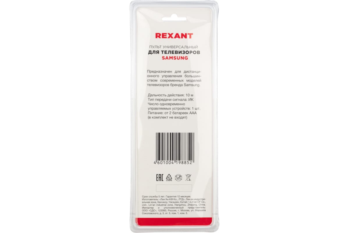 Универсальный пульт дистанционного управления REXANT для телевизоров Samsung 38-0020 отличается простотой в использовании и подходит для большинства современных моделей телевизоров этого бренда. Поддерживает все необходимые функции, обеспечивающие максимально полное и удобное управление телевизором. Имеет низкое энергопотребление, удобен и прост в настройке. Батарейки 2 х ААА (в комплект не входят).