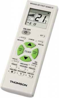 Особенности Для кондиционеров. Запрограммирован для всех распространенных марок устройств. 3 варианта установки кода: прямой ввод, поиск бренда, универсальный поиск, защита от детей. ЖК-дисплей для управления режимом работы, температурой, силой вентилятора, направлением воздушного потока, таймером.