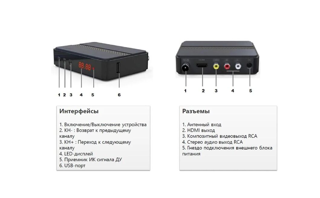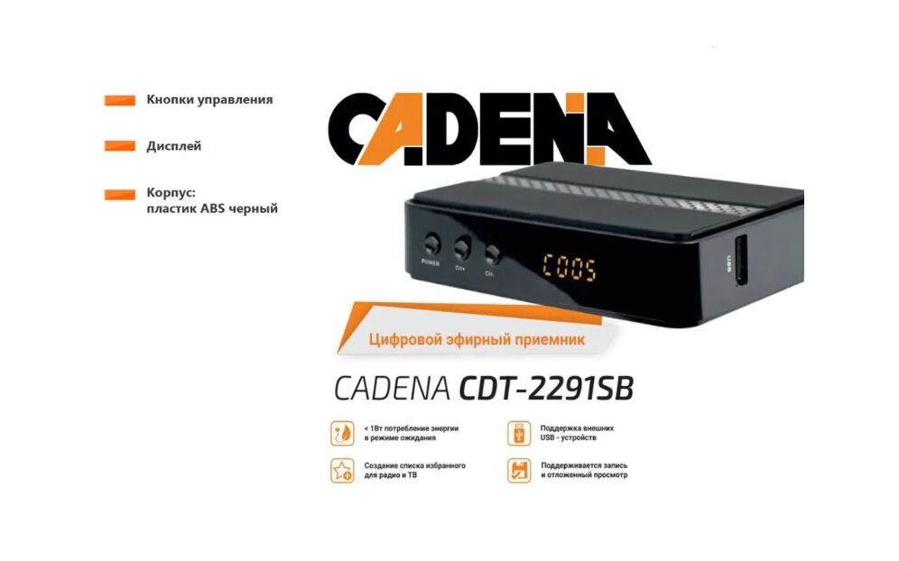 Цифровой эфирный приемник Cadena CDT-2291SB со встроенным тюнером DVB-T2 предназначен для приема открытых каналов эфирного вещания высокой четкости. (10/20 бесплатных каналов в зависимости от вещания мультиплексов с ближайшей вышки)