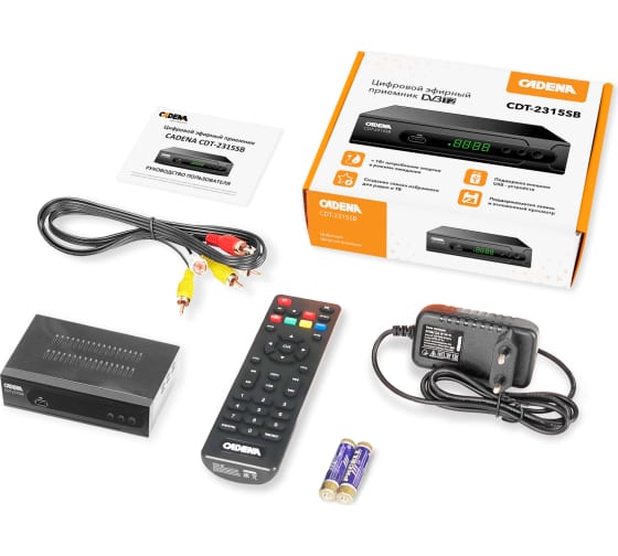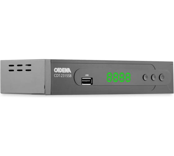 Приемник цифровой эфирный CADENA CDT-2315SB с LED-дисплеем, со встроенным тюнером DVB-T2, в металлическом корпусе. Предназначен для приема открытых каналов эфирного вещания высокой четкости. В приемник встроен USB мультимедиа интерфейс, с помощью которого вы можете проигрывать/прослушивать музыку, фото, видеофайлы. Имеет полный набор стандартных операций: запись телепередач и запись события по расписанию на USB носитель; отложенный просмотр; телетекст; родительский контроль.