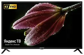 Телевизоры BAFF используют технологию Smart TV на платформе Yandex. Простой и понятный интерфейс дает доступ к множеству приложений, настройкам, встроенному голосовому поиску и управлению через помощника Алиса. Два встроенных динамика мощностью 16 Вт передают качественный и четкий звук.