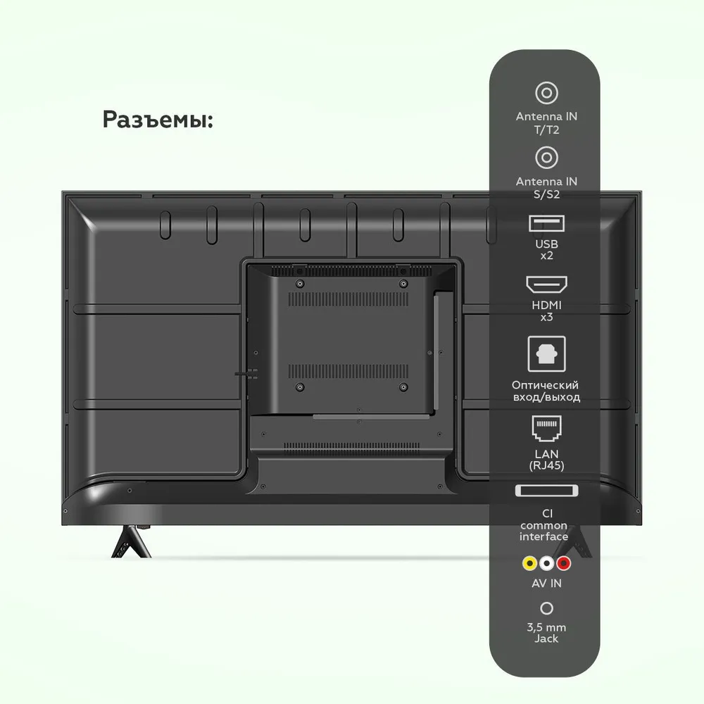 HDMI, USB, CI+, RJ-45 (Ethernet), 3.5 мм, Композитный