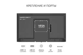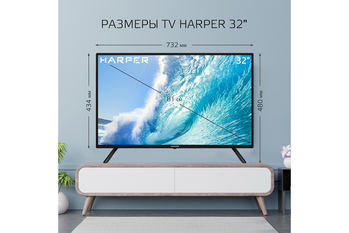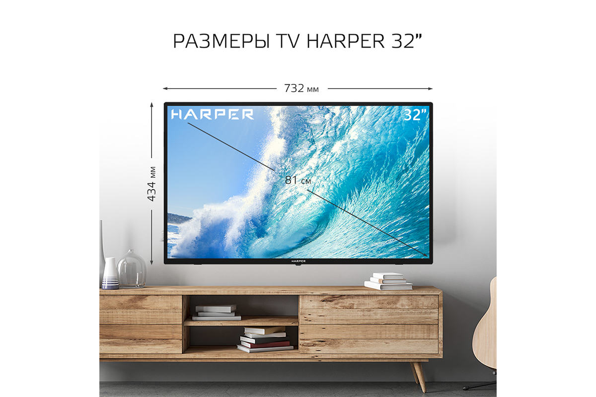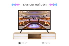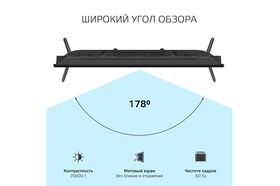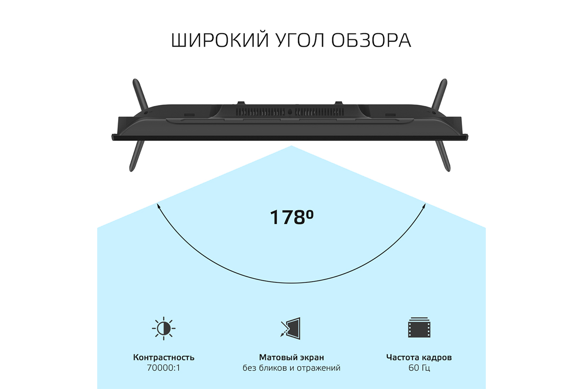 Телевизор, опорная подставка, кабель питания (если предусмотрено конструкцией), пульт дистанционного управления, батарейки ААА - 2 шт., инструкция по эксплуатации.