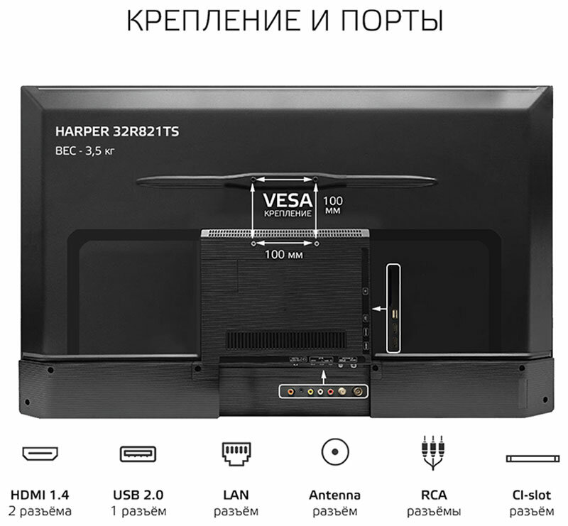 Разъемы (вход): антенныйx1, HDMIx2, USBх1, CI