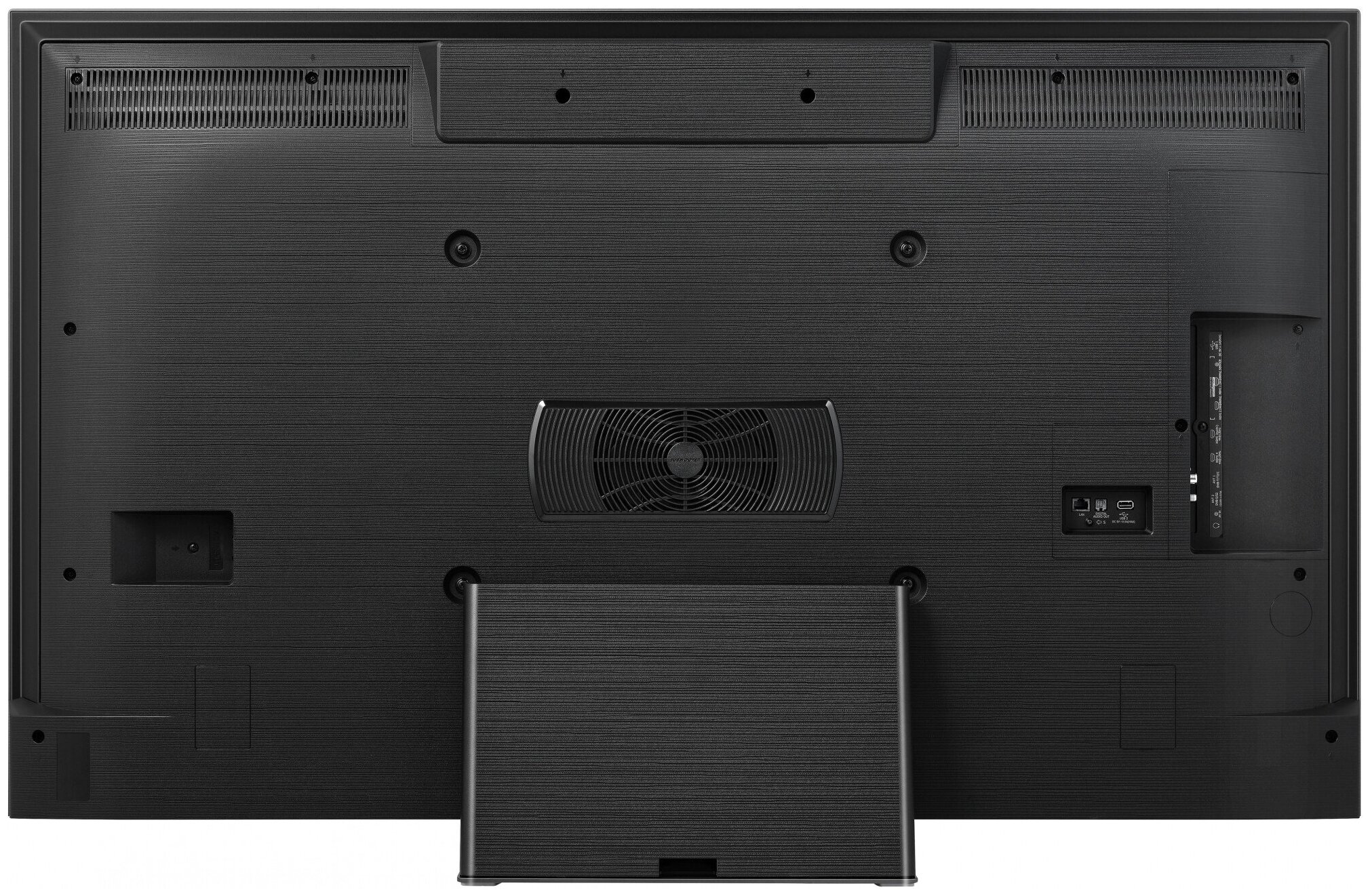 черный корпус, фронтальная панель пластик тёмно-серый, подставка по центру