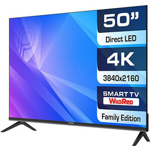 Общие параметры Тип телевизор LEDПитание 220-240 В ~ 50/60 ГцЦвет рамки черныйЦвет подставки черныйДата начала производства 2021ЭкранТип подсветки экрана Direct LEDДиагональ экрана (дюйм) 50"Диагональ экрана 127 смРазрешение экрана 4K UltraHD, 3840x2160Формат экрана 16:9Стандарты HDTV Ultra HD (4K) 2160pПоддержка HDR нетПараметры матрицыТип матрицы VAЯркость 250 Кд/м²Контрастность 4000Угол обзора 178° / 178°Smart TVОперационная система Android (AOSP)Поддержка Smart TV естьWi-Fi встроенныйПрием сигналаЦифровые тюнеры DVB-C, DVB-S2, DVB-T, DVB-T2Телетекст естьЗвукМощность звука 16 ВтСабвуфер нетОбъемное звучание естьМультимедиаВоспроизведение с внешних носителей естьПоддерживаемые носители USBРазъемы и коммутацияКоличество HDMI портов 3Другие аудио-/видеовходы композитный AVВыход на наушники естьДругие аудио-/видеовыходы аудио S/PDIF (оптический)Количество USB 2Слот для CI/PCMCIA естьУстройство для чтения карт памяти нетBluetooth нетПорт Ethernet естьФункцииИгровой телевизор нетКартинка в картинке нетHDMI CEC естьHDMI ARC естьКреплениеВозможность настенного крепления естьРазмер VESA 200 x 200Расположение подставки по бокамДополнительная информацияМаксимальная потребляемая мощность 100 ВтКомплектация батарейки, документация, пульт ДУОсобенности, дополнительно родительский контрольГабариты и весШирина без подставки 1111.24 ммВысота без подставки 647 ммТолщина без подставки 85 ммШирина с подставкой 1111.24 ммВысота с подставкой 709.49 ммТолщина с подставкой 228.65 ммВес с подставкой 9.1 кгГабариты и вес в упаковкеШирина коробки 1200 ммВысота коробки 730 ммГлубина коробки 137 ммВес в упаковке 14 кг