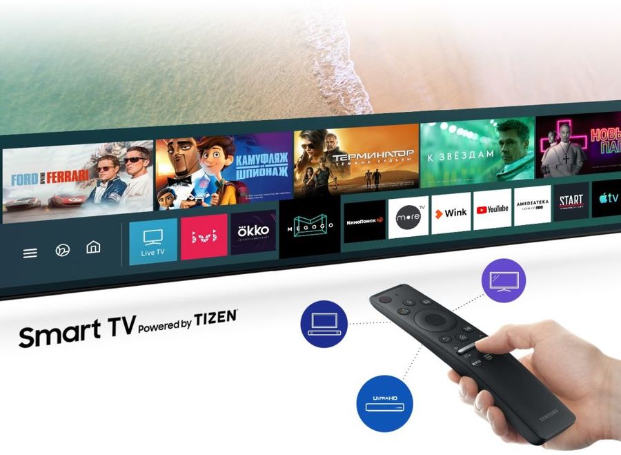 SMART TV Веб-браузер. Поддержка приложения SmartThings App Support. Галерея. Зеркалирование. Просмотр по Тапу. Удаленный доступ. Экономичный Bluetooth. Поддержка WiFi Direct. Звук ТВ в мобильное устройство. Поддержка функции Sound Mirroring. HbbTV 1.5(RU).