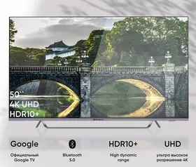 Телевизор Shivaki US50H3501 4K UHD Smart прекрасно впишется в любой домашний или офисный интерьер благодаря своему уникальному дизайну и компактному корпусу. Но его преимущества не ограничиваются внешним видом. Функция Time Shift (живая пауза) позволяет вам поставить на паузу любой канал с помощью кнопки на пульте, что прилагается в комплекте. С двумя колонками общей мощностью 20 Ватт, он воспроизводит пространственный звук, погружая вас в события, разворачивающиеся на экране. С диагональю 50 дюймов, вы сможете наслаждаться комфортным просмотром вашего любимого контента в формате 4K UHD вместе со всей семьей. Светодиодные подсветки LED обеспечивают равномерное освещение экрана, создавая непревзойденную цветопередачу и глубину черного.