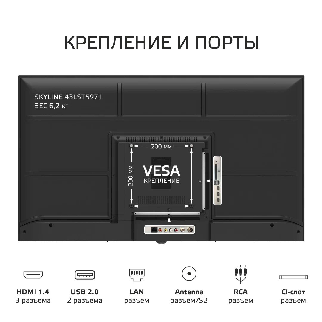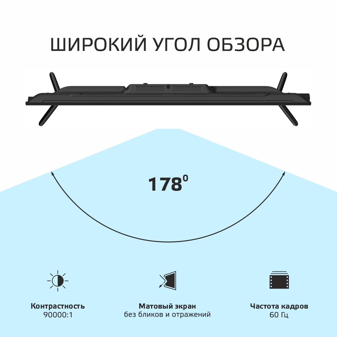 Комплектация: Телевизор, опорная подставка, кабель питания (если предусмотрено конструкцией), пульт дистанционного управления, батарейки ААА - 2 шт. (опционально), инструкция по эксплуатации, гарантийный талон.