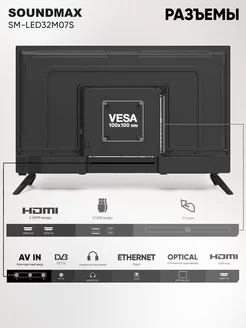 Аудиовыходы наушники (3,5 мм), оптический цифровой (Toslink), HDMI ARC