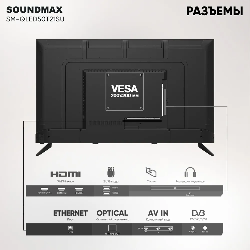 Телевизор SoundMAX SM-QLED50T21SU