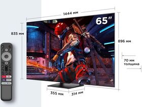 144Гц VRR. Голосовое управление. QLED. 1000 нит пиковая яркость. Google TV. Встроенный модуль Bluetooth: Да. Габаритные размеры (В*Ш*Г): 90*144*31 см. Серия: C745. Диагональ экрана: 165.1. Ultra HD: Да. Экран: 65"/3840x2160 Пикс. Частота обновления: 144. Технология HDMI ARC: Да. Операционная система: Google TV. Звук: 2.0. Тип батарей пульта ДУ: 2 х AAA. Смартфон в качестве пульта ДУ: Да. Поддержка Wi-Fi: Да. Поддержка Smart TV: Да. Запись с ТВ на USB устройство: Да. Sleep-таймер: Да. Функция TimeShift: Да. Цифровой тюнер DVB: T/T2/C/C2/S/S2. LAN разъем (RJ45): 1. Разъем для модуля DVB CAM: 1. Разъем для наушников 3.5 мм: 1. Настольная подставка: Да. Вес без подставки: 19.2. Ширина подставки: 35.5. Технология экрана: VA. Воспроизведение с USB: Да. Поддержка Apple HomeKit: Да. Габаритные размеры (без подставки): 84*144*7 см. Google Assistant: Да