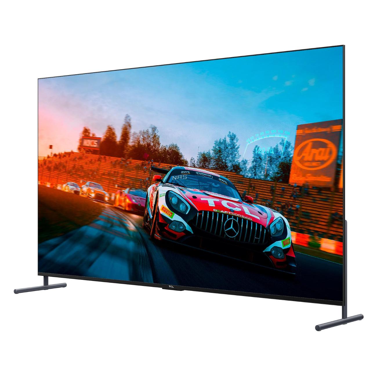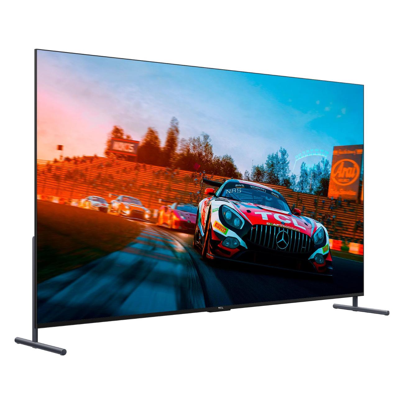 Телевизор TCL 98C745 характеризуется большим экраном диагональю 98 дюймов, что способствует глубокому погружению в контент. Разрешение — 3840х2160 пикселей. Технология экрана — VA. Частота обновления доходит до 120 Гц, за счет чего смена картинки в динамичных сценах происходит максимально плавно, без резких и заметных разрывов. Поддерживается технология HDR. Система цифрового шумоподавления очищает картинку при недостаточно хорошем уровне ТВ-сигнала, делая ее более четкой.