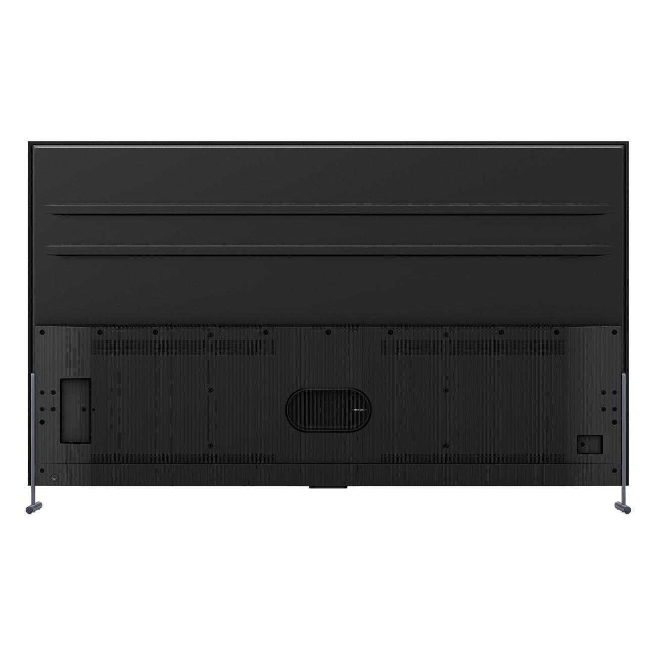 Мощность фронтальных АС составляет 2х15 Вт. Технология звука — Dolby Atmos. Телевизор оснащен встроенными модулями Bluetooth и Wi-Fi. Поддерживается управление при помощи пульта ДУ и голосового помощника Google Assistant. Цифровой тюнер DVB T/T2/C/S/S2 служит для приема и декодирования ТВ-сигнала. Предусмотрен широкий набор интерфейсов: HDMI (четыре), порт USB 2.0 тип A, LAN-разъем (RJ45), слот для модуля DVB CAM и 3,5 мм для наушников. Возможна установка на подставку и крепление к подвесу VESA 400x850. Размеры без подставки — 126х217х10 см, вес — 59,6 кг. Потребляемая мощность модели составляет 540 Вт.