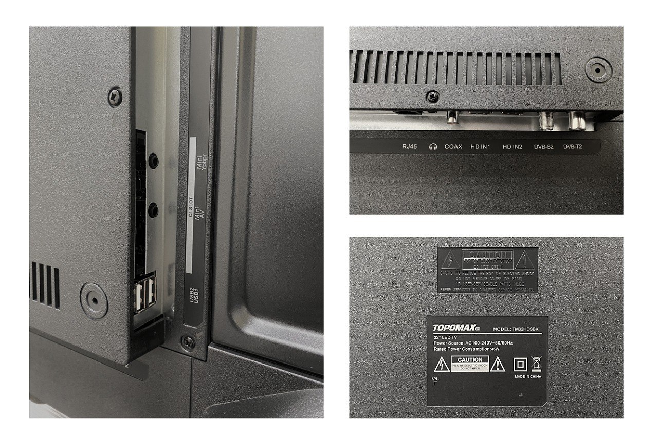 COAX (*OPTICAL), YPBPR, наушники, DVB-T/T2, DVB-S2, RJ45, HDMI1, HDMI2 (*ARC), AV, USB2.0, USB2.0