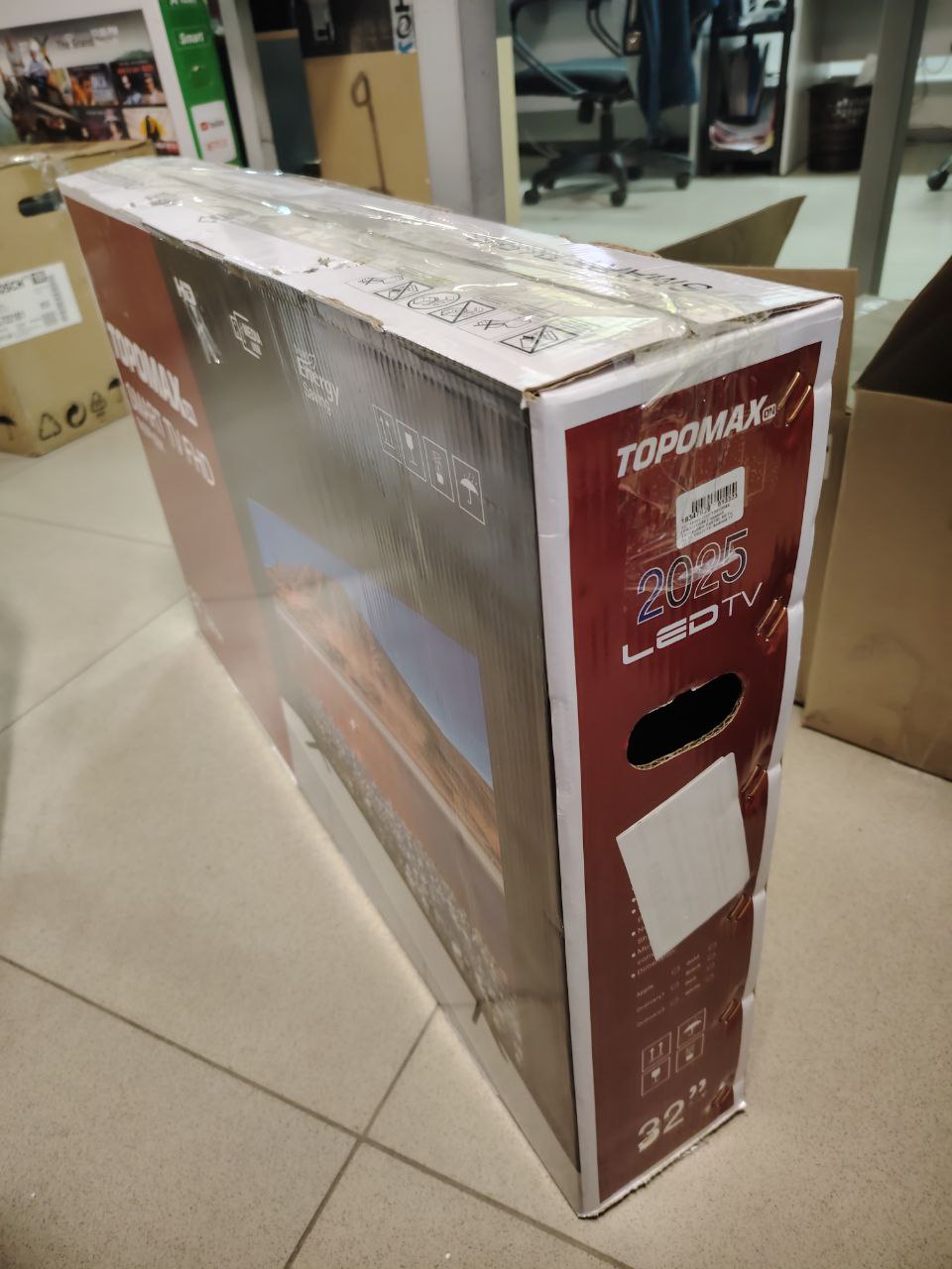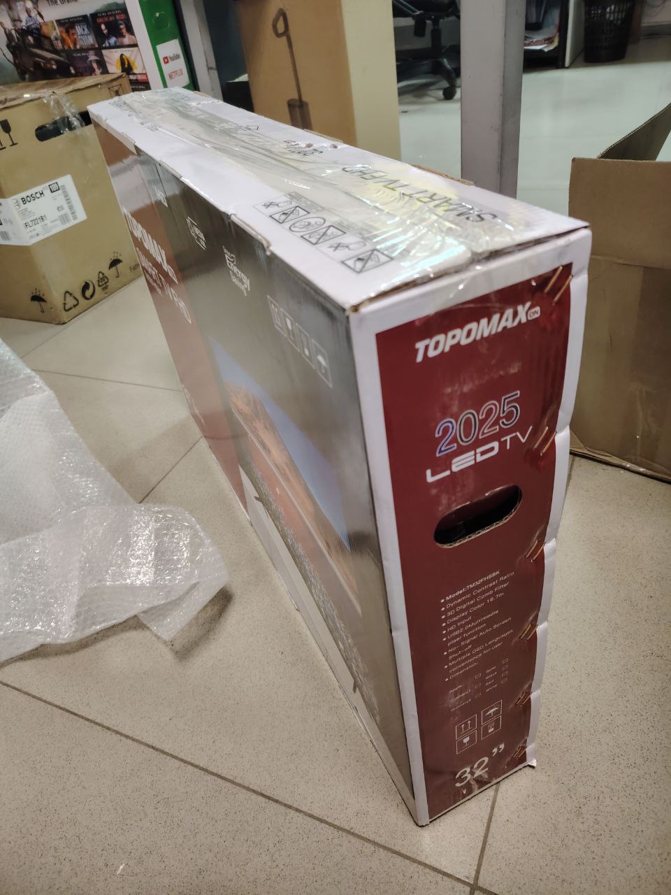 УЦ Телевизор TOPOMAX TM32FHSBK черный 1920x1080, Full HD, 60Гц, Wi-Fi, Smart TV, Android TV 12.0 (плохая упаковка, пятно на экране)