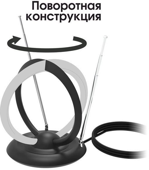 Изменяемый угол наклона, поворотная конструкция и два телескопических уса обеспечивают устойчивый приём сигнала. Встроенный активный усилитель порадует любимыми телепередачами в хорошем качестве даже при слабом эфирном ТВ сигнале.