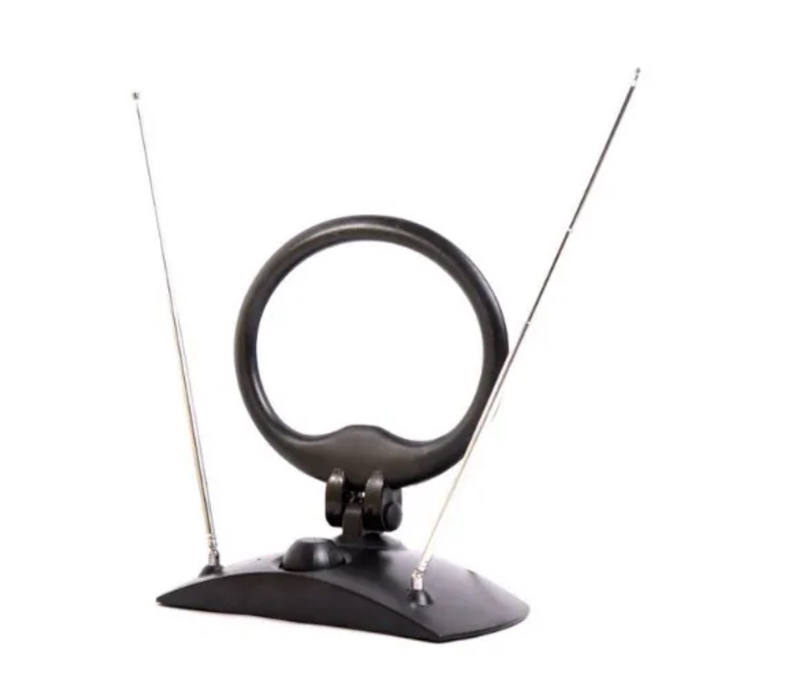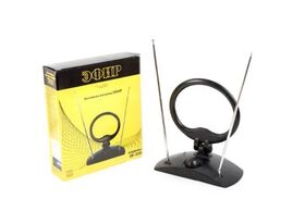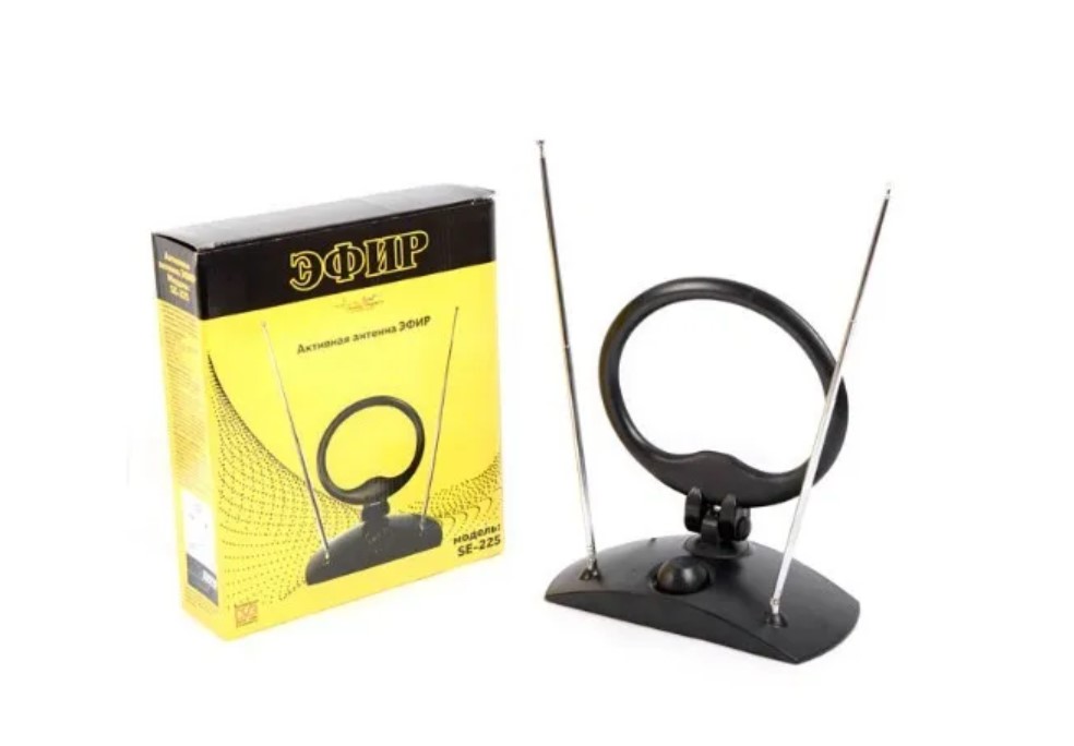 Эфир SE-225 – комнатная комбинированная антенна с кольцом и вибраторами-усами. Принимает телесигнал в метровом и дециметровом диапазонах, ловит цифровые эфирные каналы, FM-радиостанции.