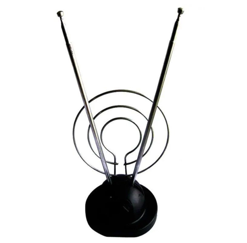 Данную антенну можно разместить прямо на верхнюю панель телевизора. Принимает сигнал в диапазонах ДМВ, DVB-T, DVB-T2.