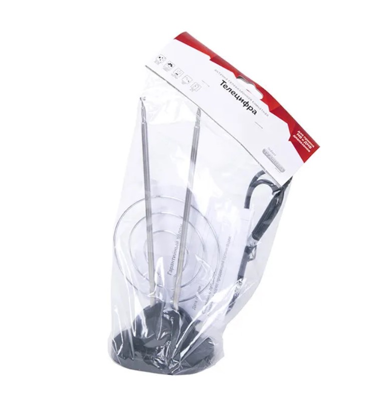 Телевизионная комнатная антенна «Эфир» SE-280 для просмотра цифрового и аналогового телевидения выполнена из пластика.