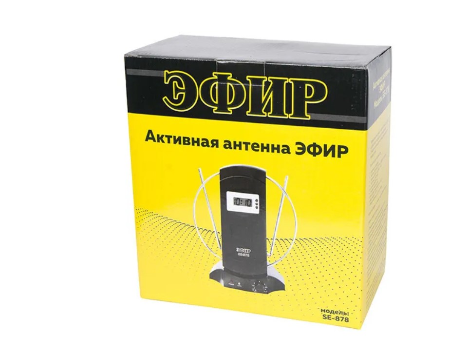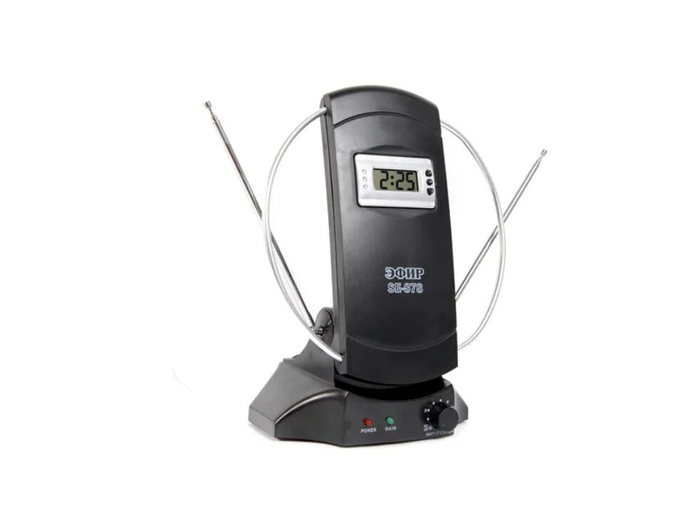 Телевизионная комнатная антенна «Эфир» SE-878 для просмотра цифрового и аналогового телевидения выполнена из пластика.