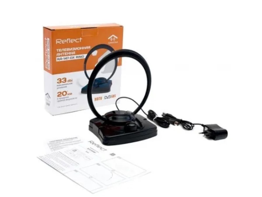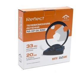 Комнатная антенна reflect RING RA-147-DX 27533 активная телевизионная антенна предназначена для приема телепередач в диапазоне ДМВ в цифровых DVB-T/DVB-T2 форматах. Имеет специальный малошумящий усилитель со встроенным фильтром для предотвращения помех от базовых станций сотовой связи, что позволяет значительно улучшить прием в сложных условиях города или ближнего пригорода.