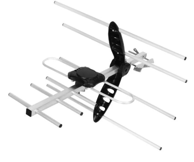 Антенна телевизионная, наружная, пассивная, ДМВ, частотный диапазон 174-862 МГц, усиление - до 12 Дб, выполнена из алюминия+пластик.