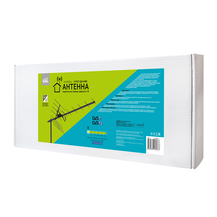 Усиление пассивной антенны, дБ (1-5/6-12/21/60 каналы) 1/5/13
