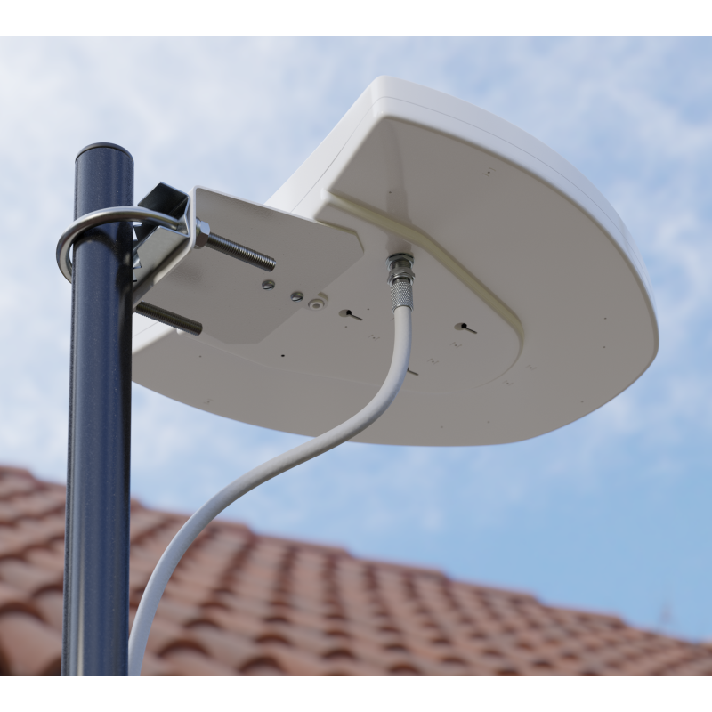 Также антенну можно запитать от Инжектора питания "BAS-8002" (не входит в состав поставки и приобретается отдельно. В этом случае антенну можно использовать с телевизорами не имеющими встроенную функцию питания антенн. Подключение к антенне осуществляется с помощью F-разъёма, смонтированного в нижней части антенны. Кабель и коннекторы не входят в комплект поставки и приобретаются отдельно. Установка антенны осуществляется с помощью штатного зажима-кронштейна на мачты, трубостойки или стеновые кронштейны.