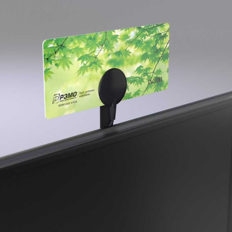 Антенна «BAS-5105-5V» предназначена для приема телевизионных программ в полосе частот 174...862 МГц (каналы с 6 по 69 МВ и ДМВ). Антенна принимает сигналы аналогового и цифрового телевидения формата DVB-T/DVB-T2. Антенна может установлена на телевизоры с креплением FDMI VESA, либо на корпус цифрового приемника (ресивера) или любую гладкую поверхность.