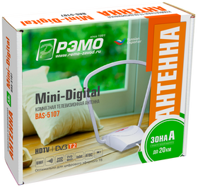 Комнатная антенна Рэмо BAS-5107 DX MINI Digital 14724 применяется для передачи сигнала в формате ДМВ (DVB-T2). Питание осуществляется от адаптера. Предусматривает два варианта установки - как на горизонтальную поверхность, так и на оконное стекло.