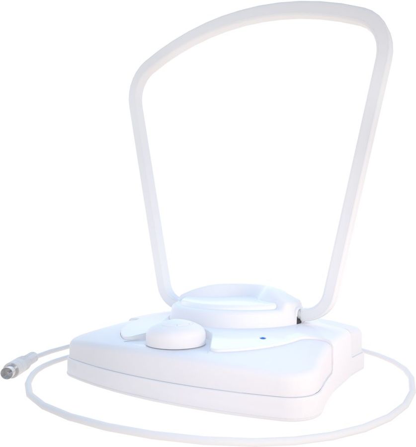 Антенна имеет специальный малошумящий усилитель со встроенным фильтром , что позволяет значительно улучшить прием в сложных условиях города. Питание встроенного усилителя антенны осуществляется от цифрового ресивера. Антенна имеет удобную подставку и классическую приемную рамку