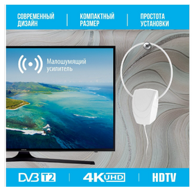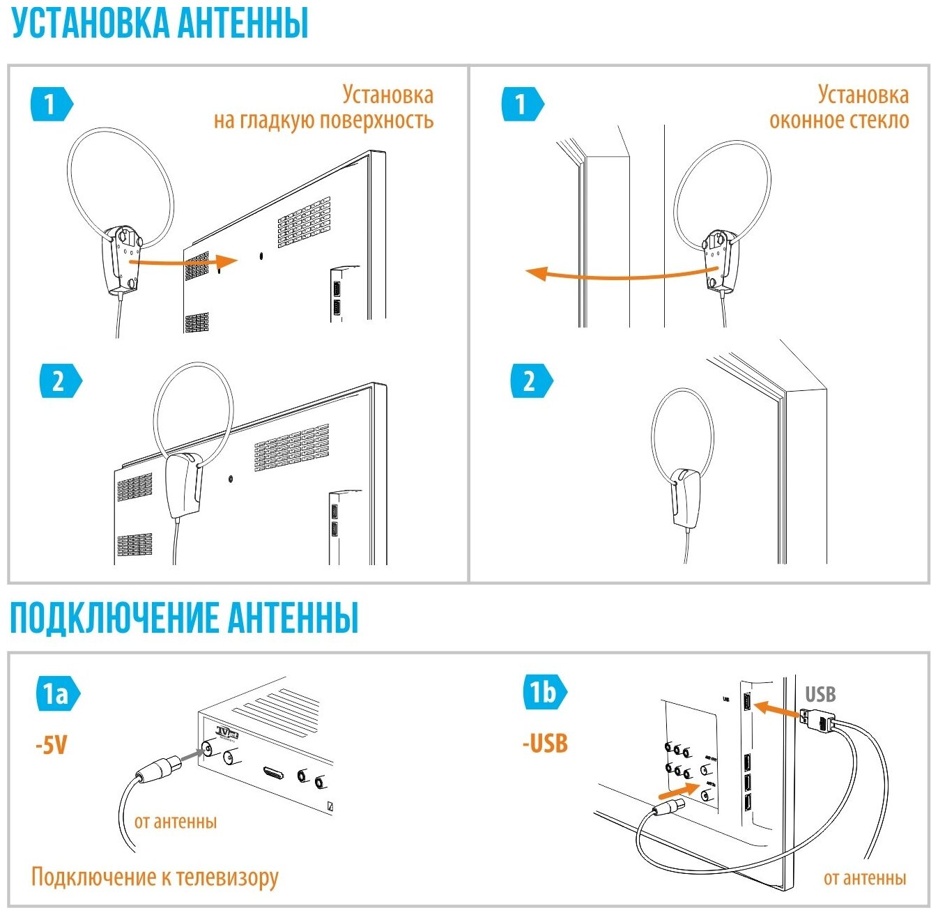 Антенна может быть установлена на окне, на любом стекле или на любой гладкой поверхности (например, за телевизором), в комплект входит двухсторонний скотч. Вам даже не нужны инструменты!