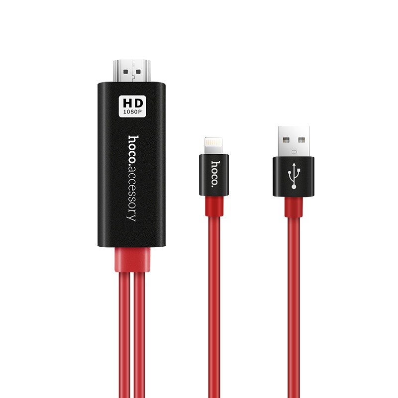 Дата-кабель HOCO UA4 HDMI lightning 2м (красно-чёрный)